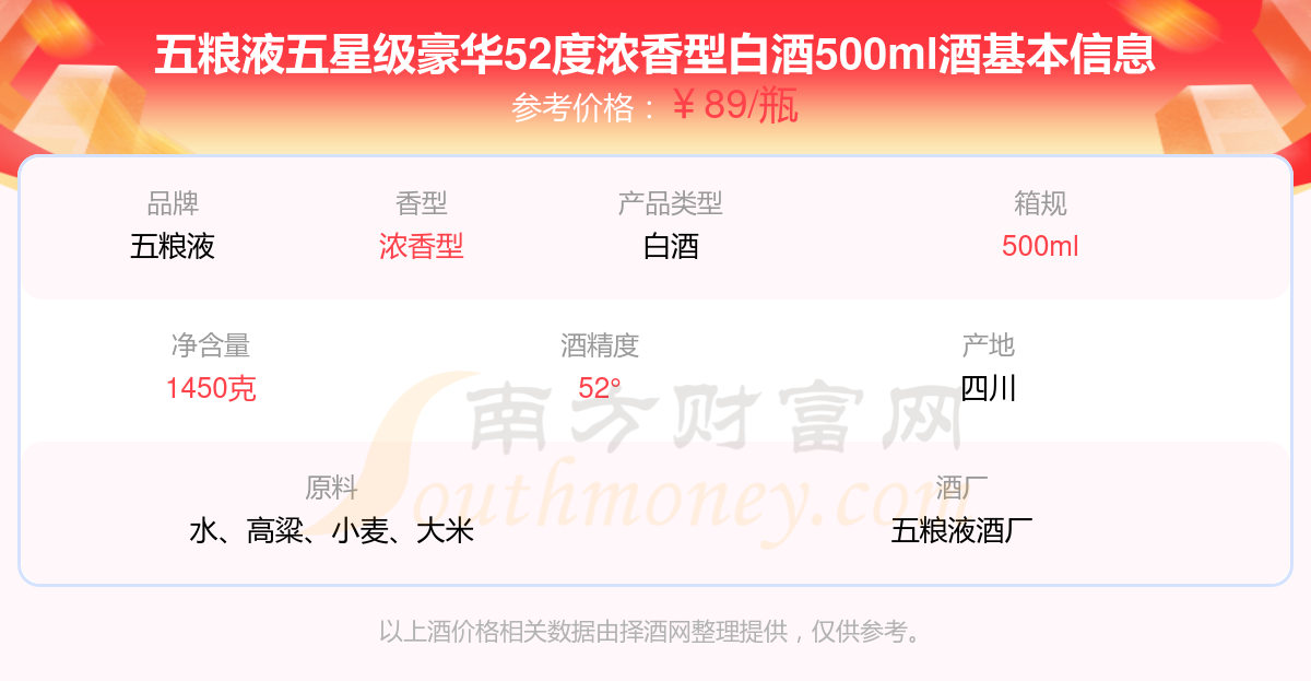五糧液五星級(jí)豪華52度濃香型白酒500ml基本信息