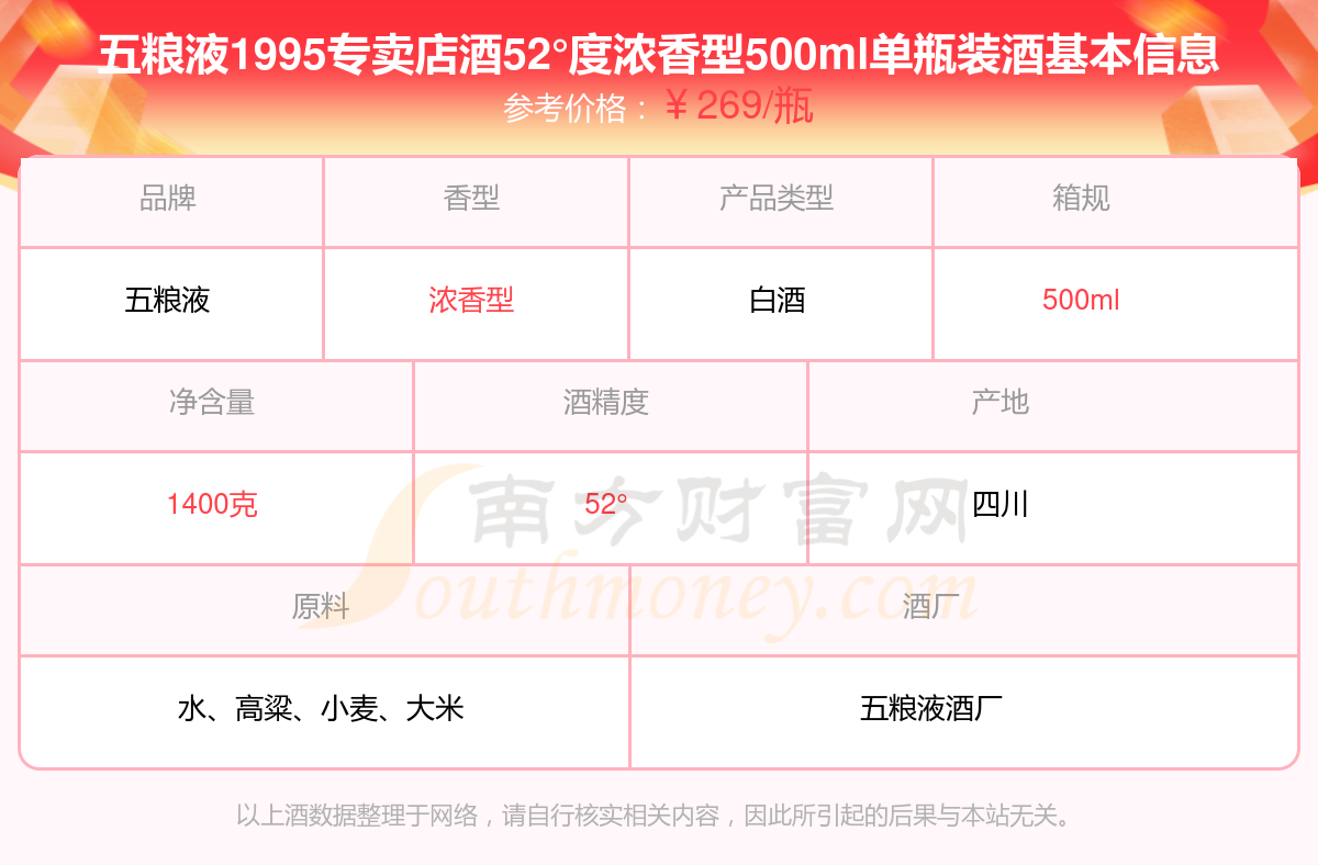五糧液1995專賣店酒52°度濃香型500ml單瓶裝基本信息