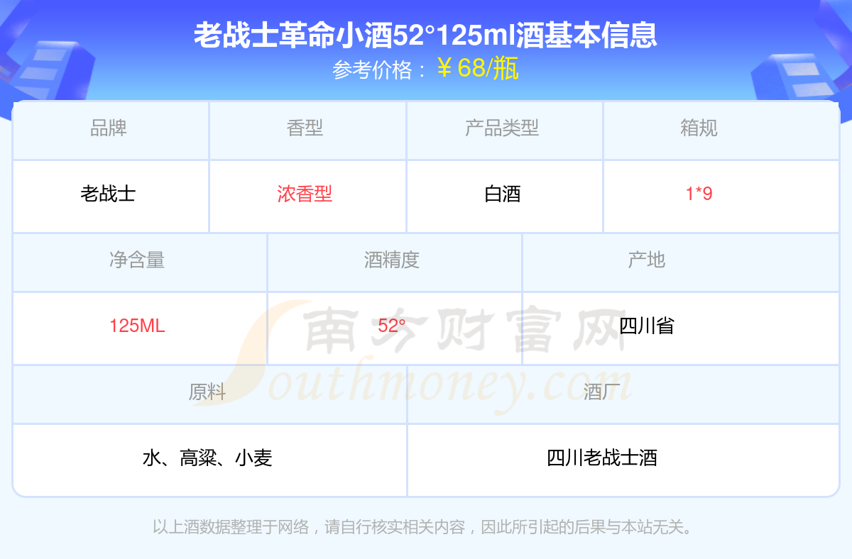 老戰(zhàn)士革命小酒52°125ml基本信息