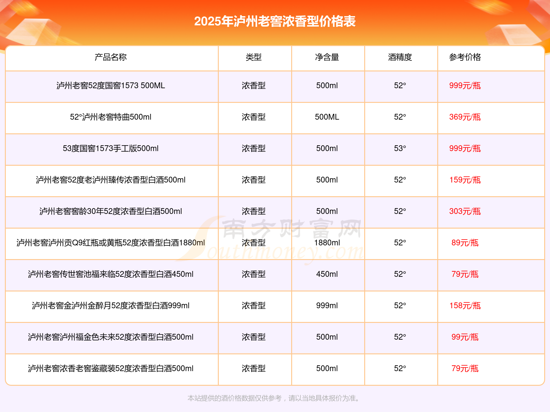 瀘州老窖國窖1573春釀鼠兆豐年E 55度參考價17999元/瓶、瀘州老窖國窖1573生命中的那壇酒55度014參考價9999元/瓶、瀘州老窖國窖1573春釀鼠兆豐年A 55度參考價5088元/瓶、瀘州老窖國窖1573生命中的那壇酒55度013濃香型白酒1000ml參考價4988元/瓶、瀘州老窖國窖1573生命中的那壇酒55度009 1000ml參考價4288元/瓶、瀘州老窖國窖1573中國品味52度濃香型白酒500ml參考價2888元/瓶。