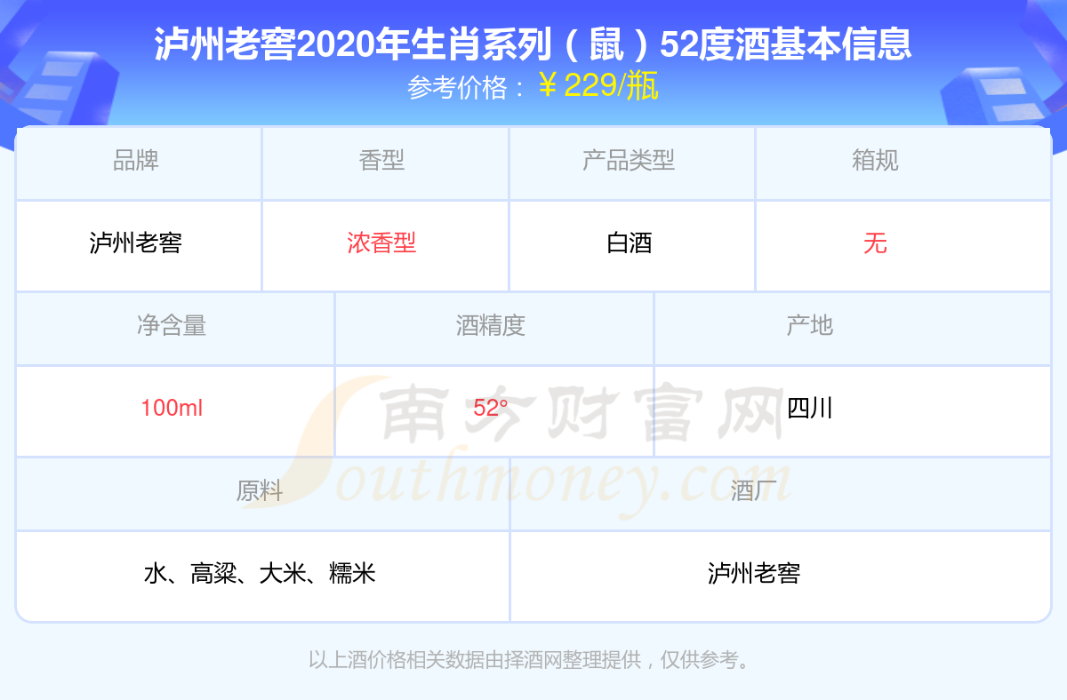 瀘州老窖2020年生肖系列(鼠)52度基本信息