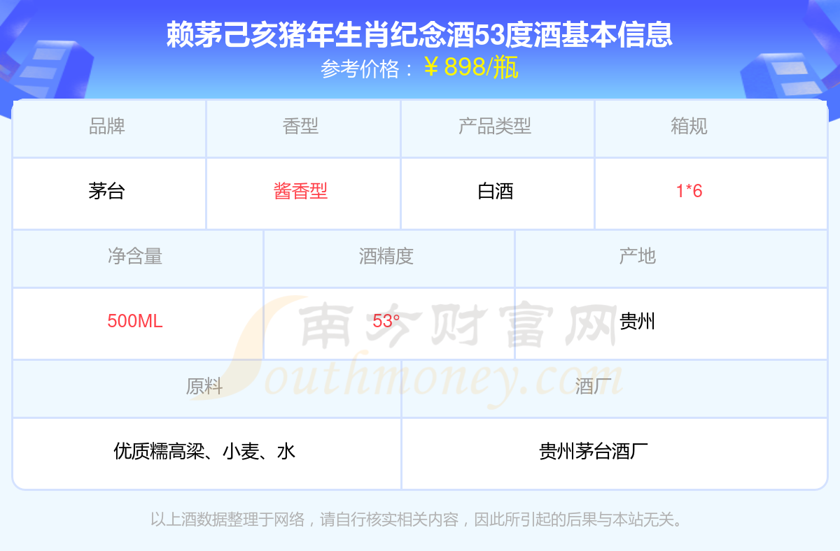 賴(lài)茅己亥豬年生肖紀(jì)念酒53度基本信息