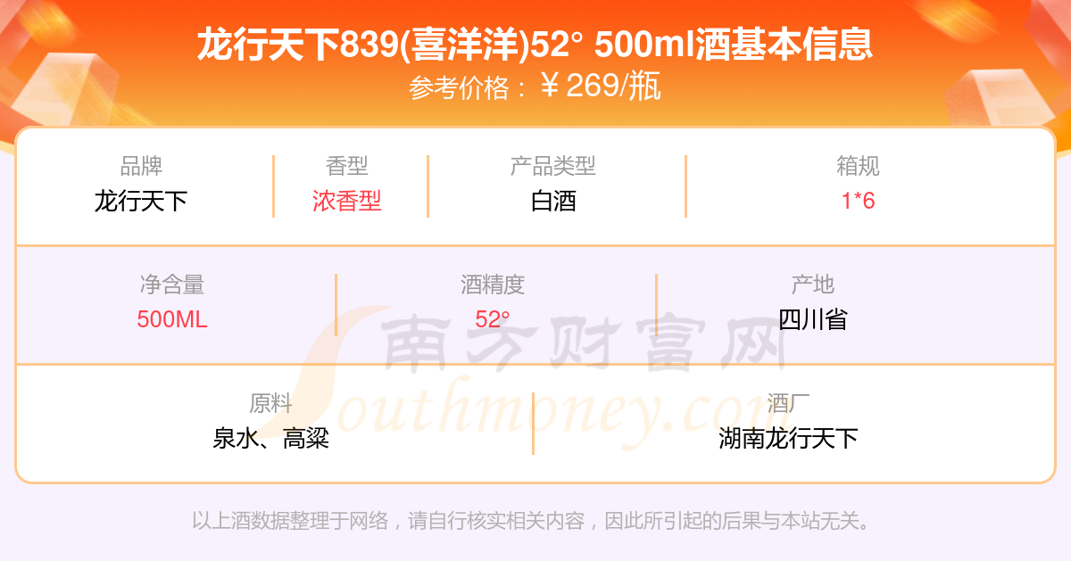 龍行天下839(喜洋洋)52° 500ml基本信息