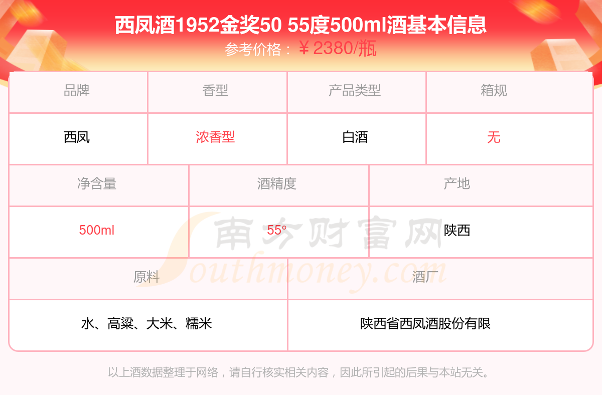 西鳳酒1952金獎(jiǎng)50 55度500ml基本信息