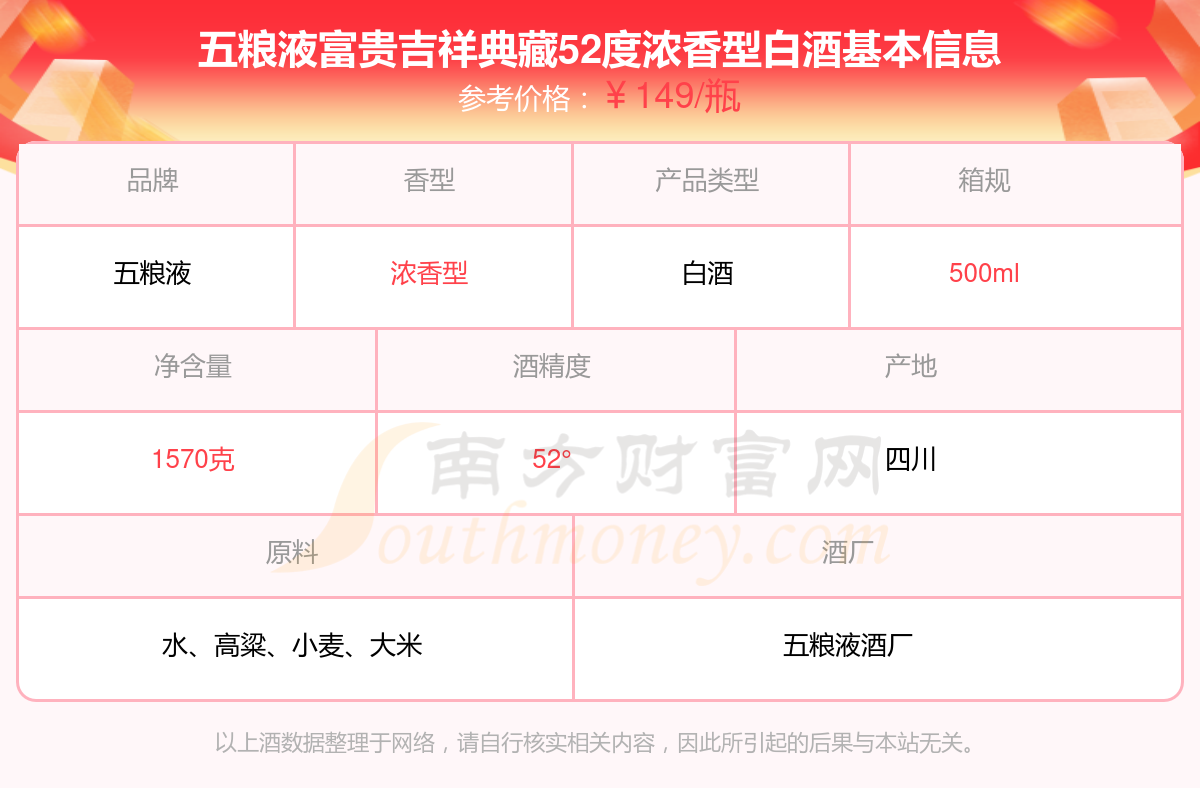 五糧液富貴吉祥典藏52度濃香型白酒基本信息