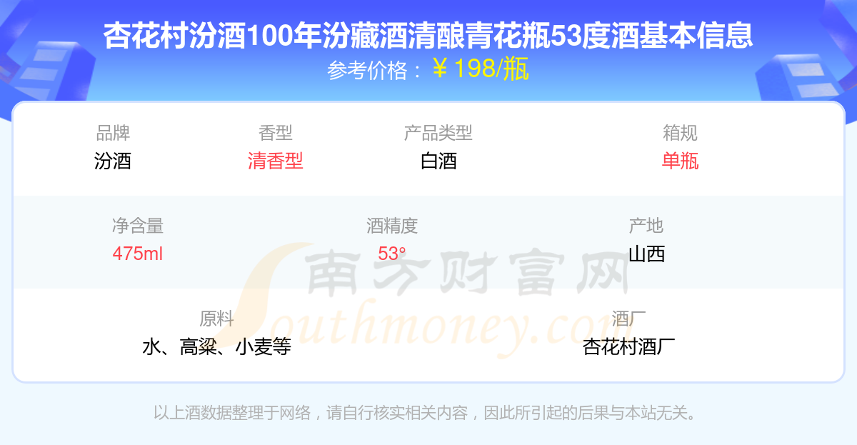 杏花村汾酒100年汾藏酒清釀青花瓶53度基本信息