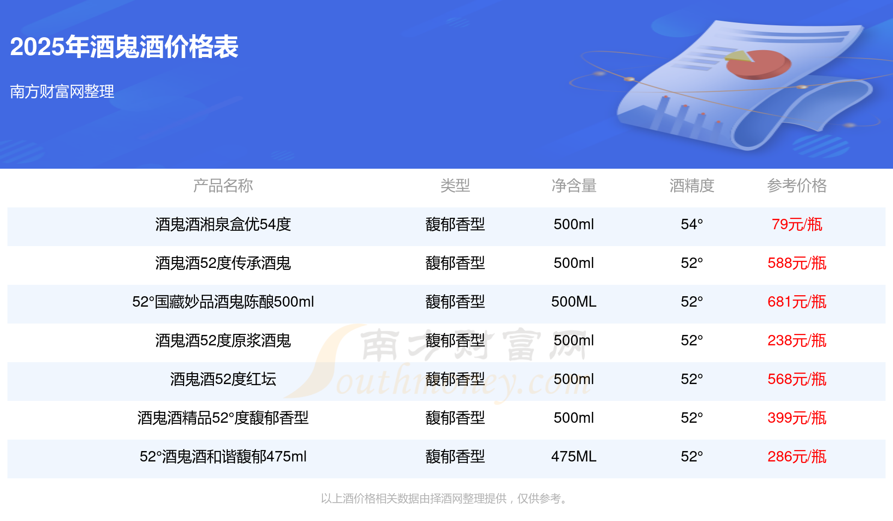 52°國藏妙品酒鬼陳釀500ml參考價681元/瓶、酒鬼酒52度傳承酒鬼參考價588元/瓶、酒鬼酒52度紅壇參考價568元/瓶、酒鬼酒精品52°度馥郁香型參考價399元/瓶、52°酒鬼酒和諧馥郁475ml參考價286元/瓶、酒鬼酒52度原漿酒鬼參考價238元/瓶。