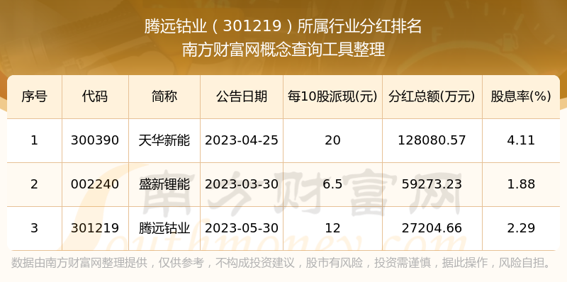 二、騰遠(yuǎn)鈷業(yè)301219行業(yè)分紅排名