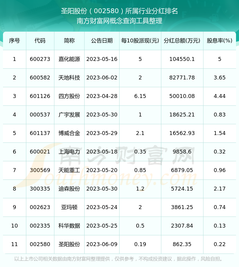 二、圣陽(yáng)股份002580行業(yè)分紅排名