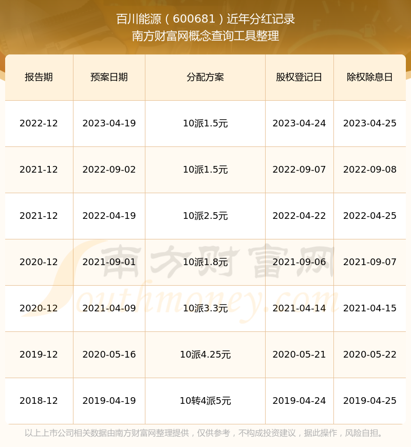 一、百川能源(600681)股票分紅記錄