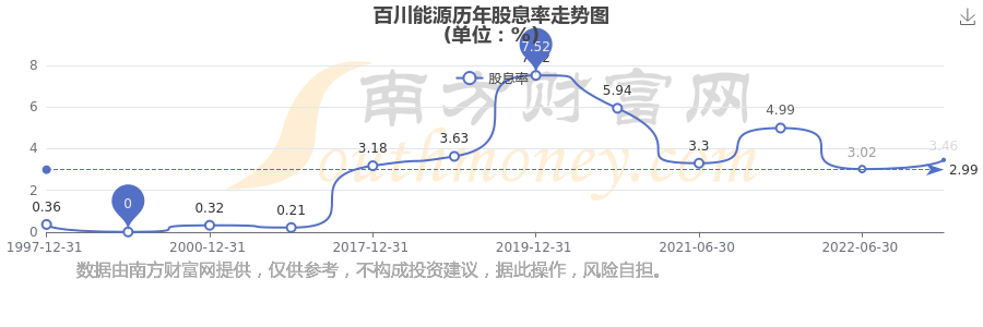 近年百川能源年度股息率走勢(shì)如下圖: