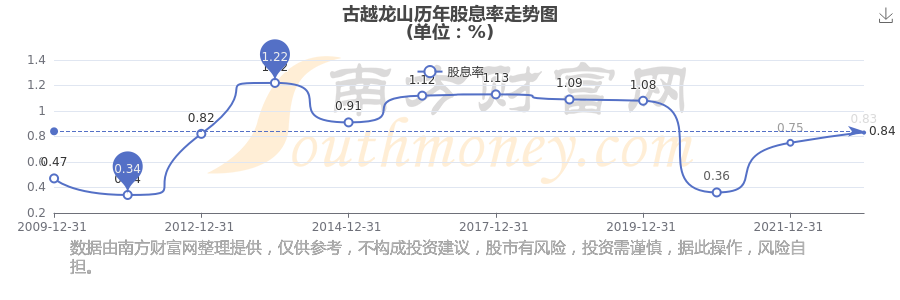 近年古越龍山年度股息率走勢(shì)如下圖: