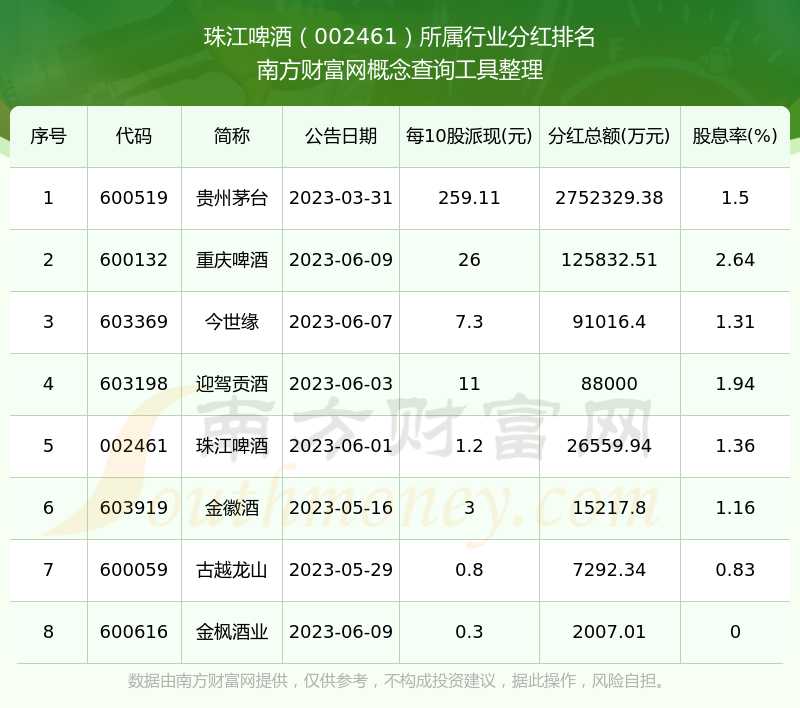 二、珠江啤酒002461行業(yè)分紅排名