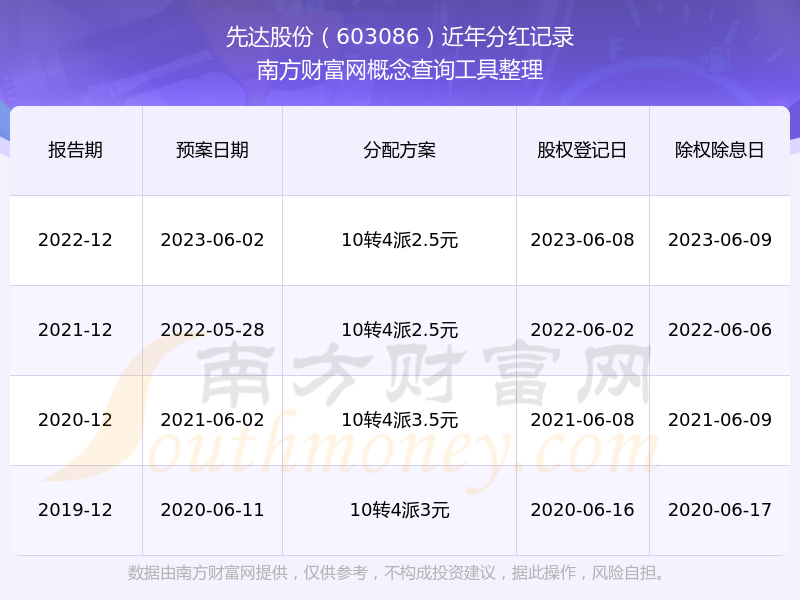 一、先達(dá)股份(603086)股票分紅記錄