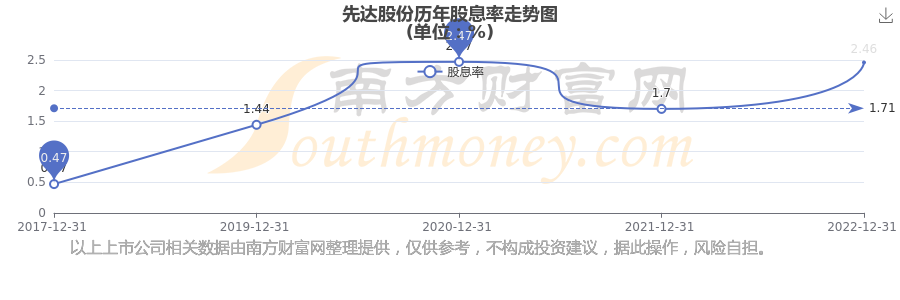 近年先達(dá)股份年度股息率走勢(shì)如下圖:
