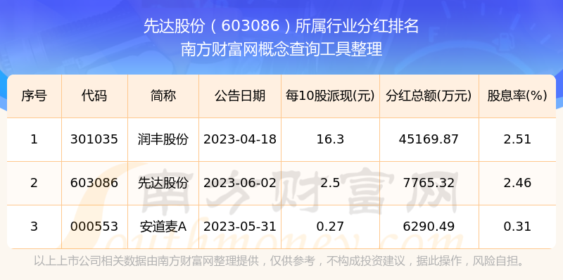 二、先達(dá)股份603086行業(yè)分紅排名