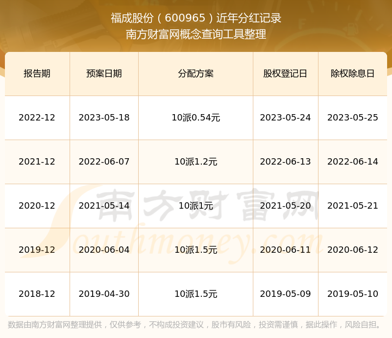 福成股份最新一次公布的分紅方案:10派0.54元。