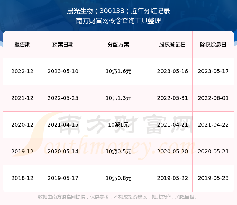 一、晨光生物(300138)股票分紅記錄