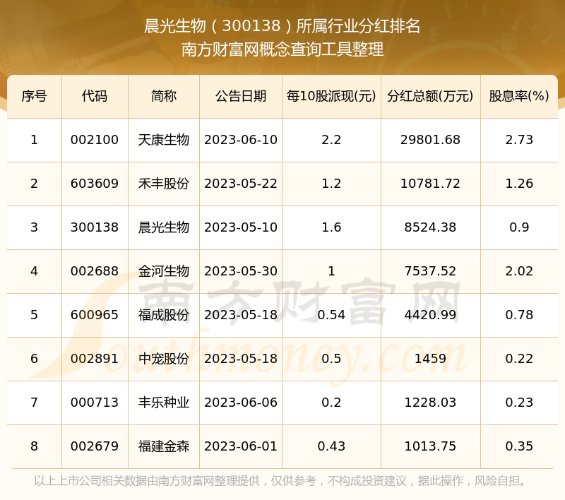 二、晨光生物300138行業(yè)分紅排名