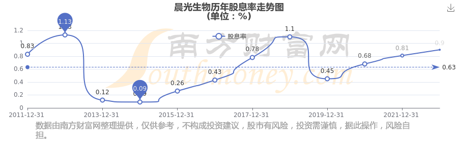 近年晨光生物年度股息率走勢如下圖:
