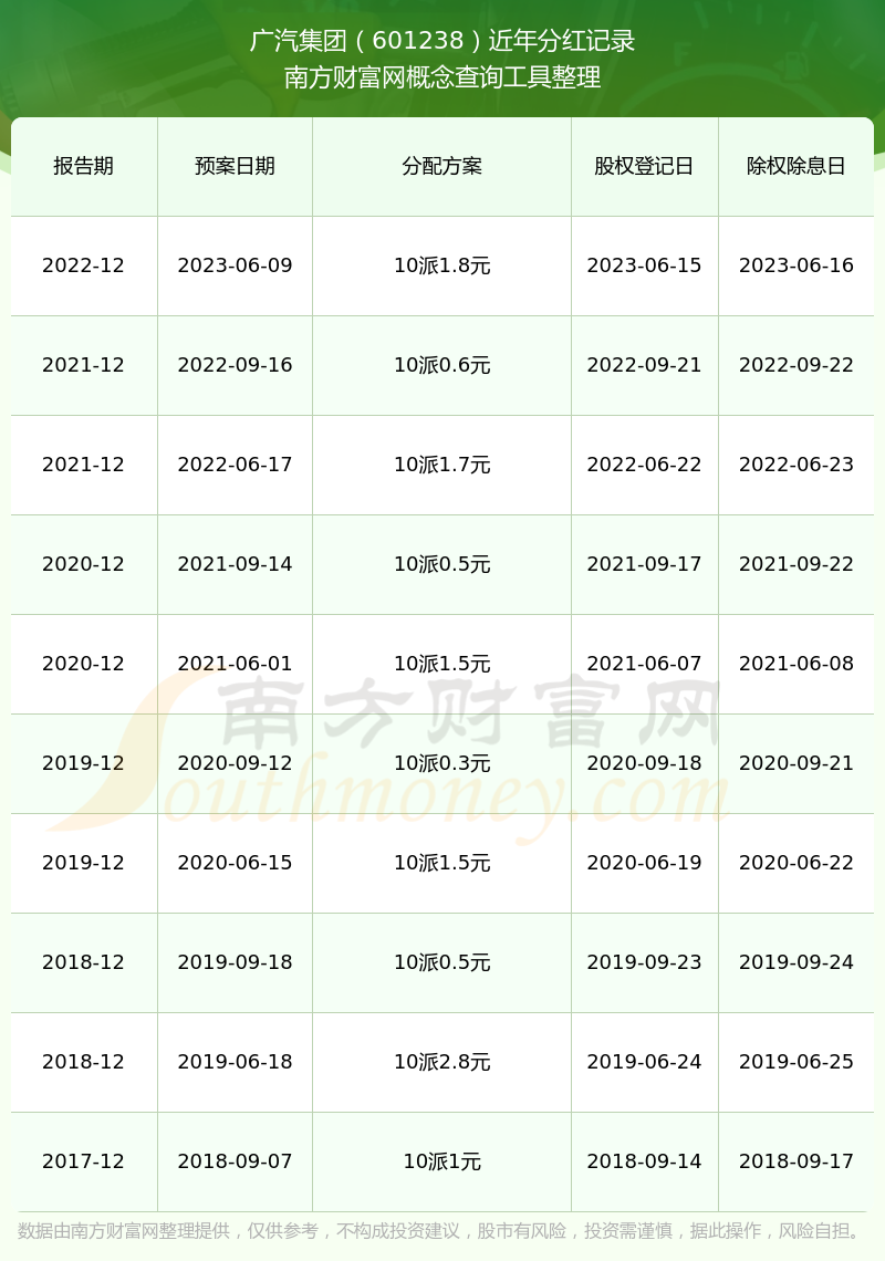 廣汽集團(tuán)最新一次公布的分紅方案:10派1.8元。