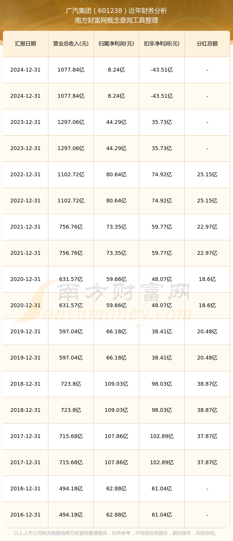 廣汽集團(tuán)歷年分紅派息情況如下表所示: