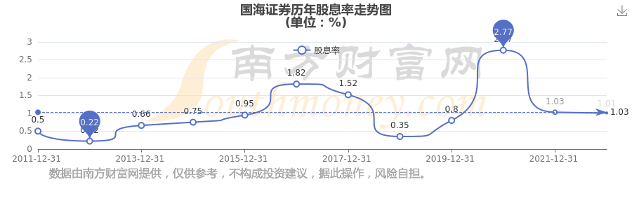 近年國(guó)海證券年度股息率走勢(shì)如下圖: