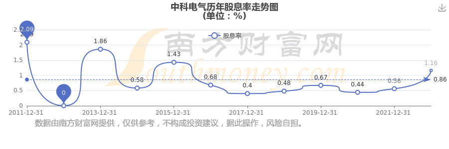 中科電氣最新一次公布的分紅方案為10派1.5元。本次權益分派股權登記日為2023年5月24日,除權除息日為2023年5月25日,派息日為2023年5月25日。