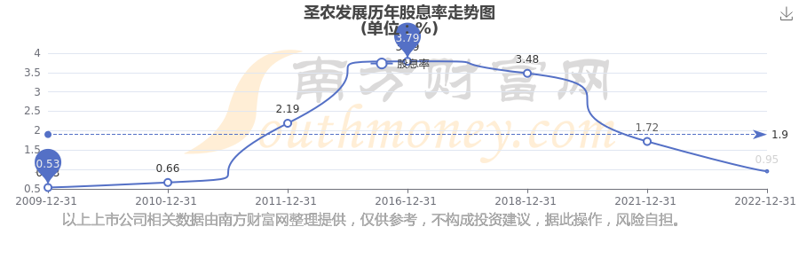 圣農(nóng)發(fā)展歷年股息率走勢如下圖: