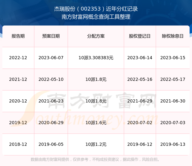 杰瑞股份最新一次公布的分紅方案為10派3.308383元。本次權(quán)益分派股權(quán)登記日為2023年6月14日,除權(quán)除息日為2023年6月15日,派息日為2023年6月15日。