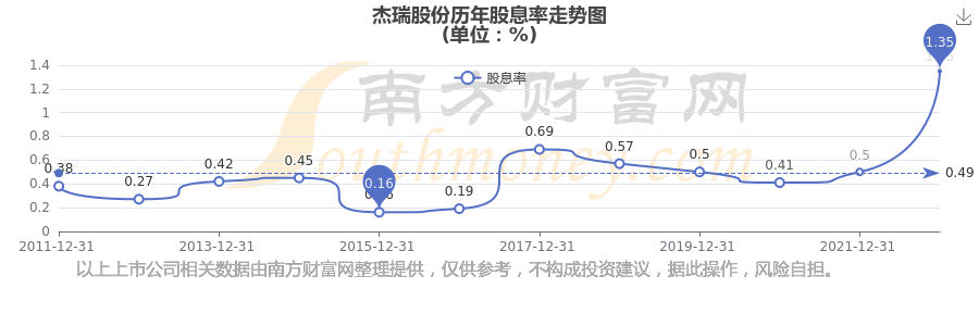 杰瑞股份歷年股息率走勢(shì)如下圖: