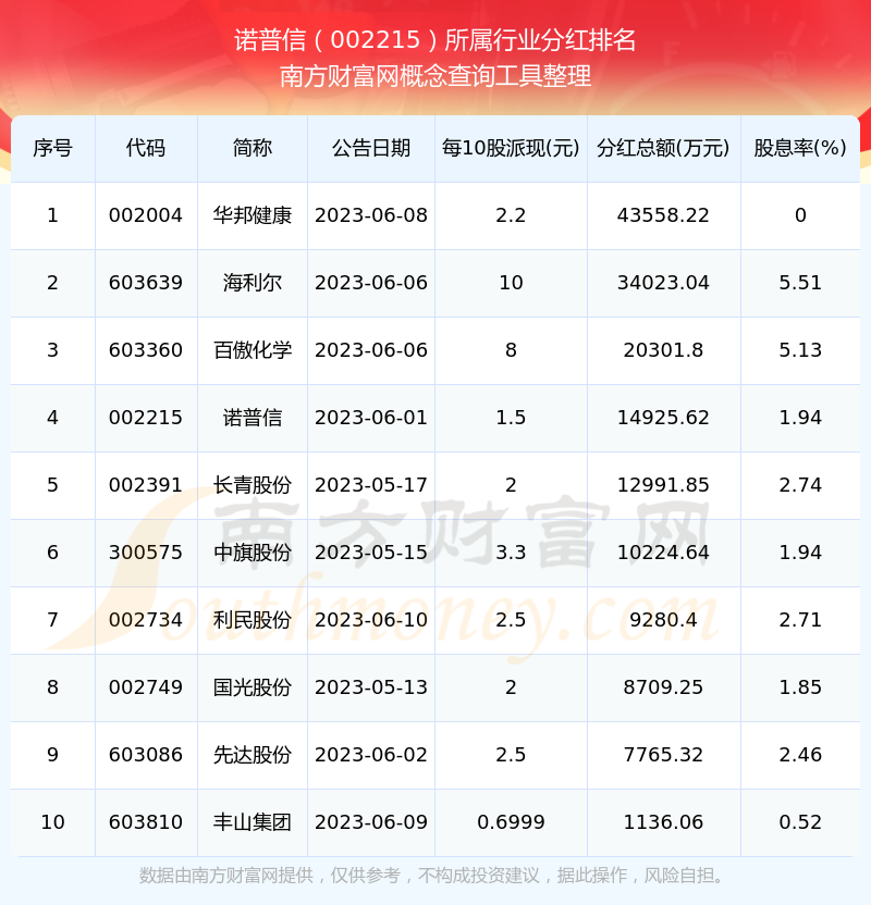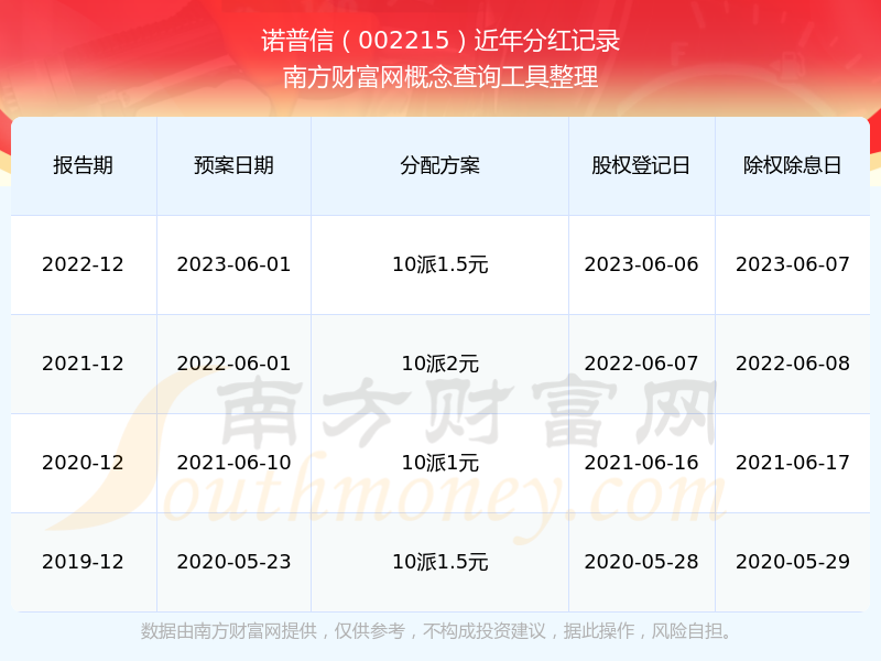 諾普信最新一次公布的分紅方案:10派1.5元。