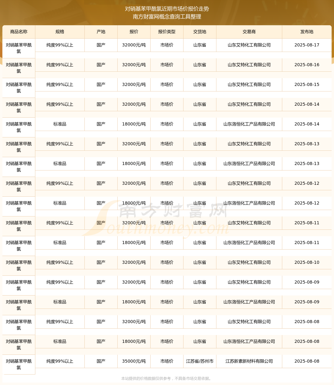 2025年8月17日對(duì)硝基苯甲酰氯市場價(jià)報(bào)價(jià)行情