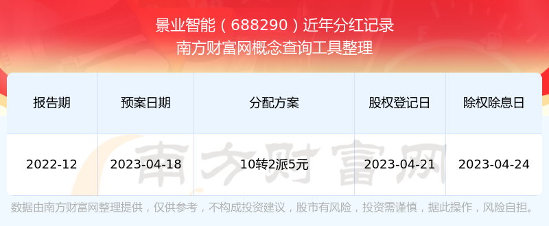 景業(yè)智能最新一次公布的分紅方案:10轉(zhuǎn)2派5元。