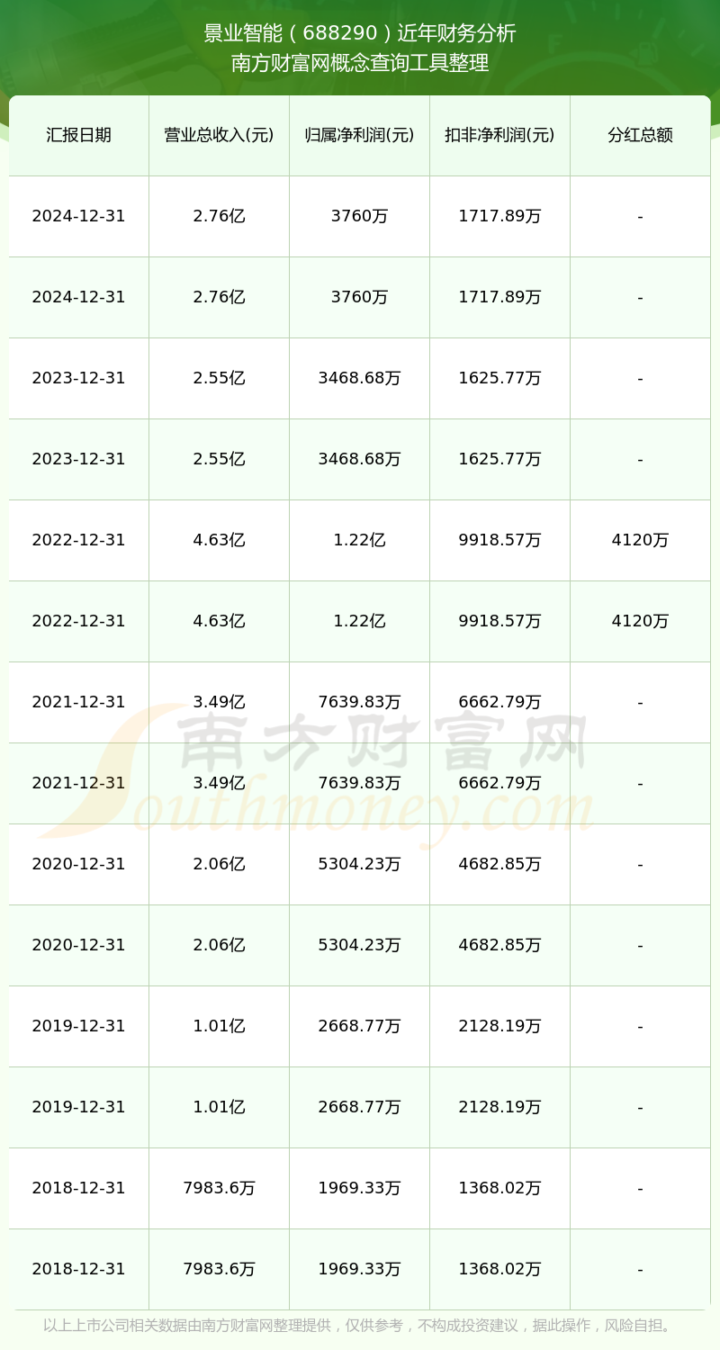 景業(yè)智能歷年分紅派息情況如下表所示: