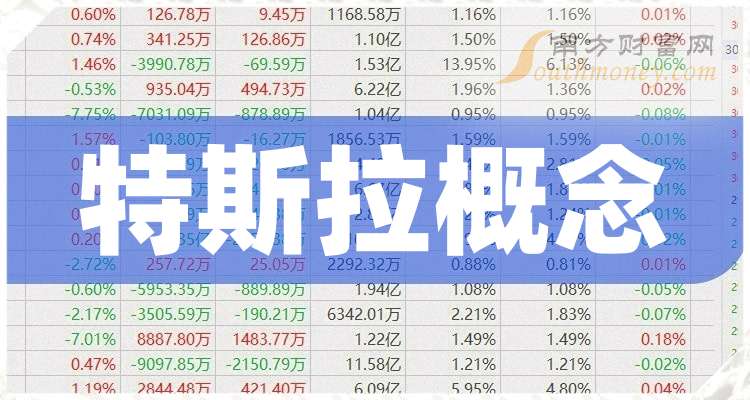 《南方財富網(wǎng)概念查詢工具》財報工具數(shù)據(jù)整理,特斯拉概念股票二季度營收排名詳情如下(數(shù)據(jù)不作參考):