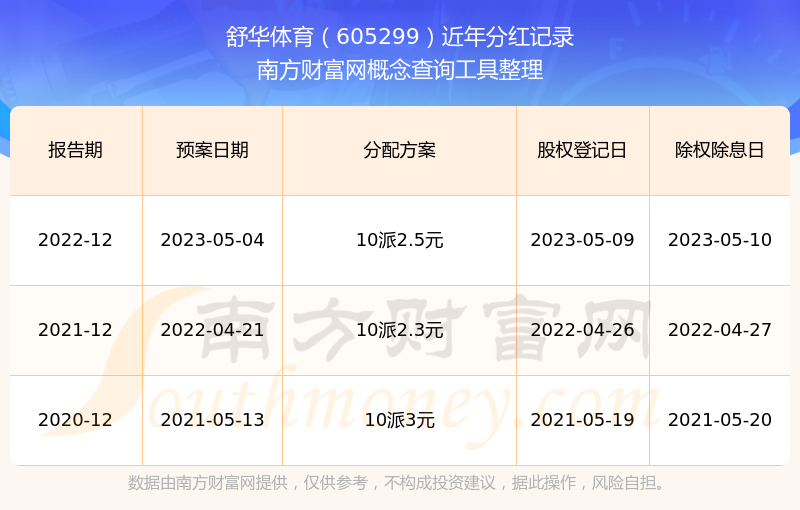 舒華體育最新一次公布的分紅方案:10派2.5元。