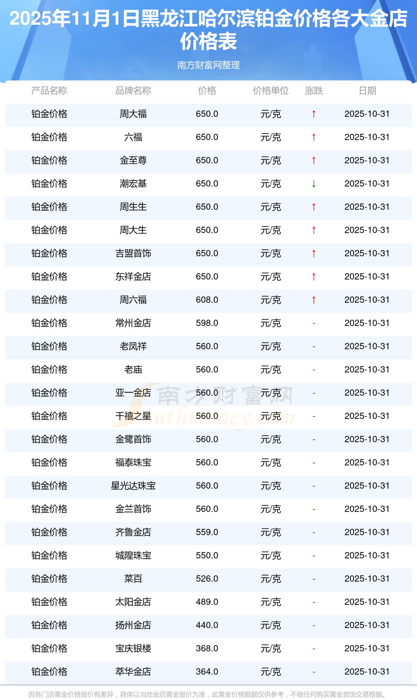 一、 黑龍江哈爾濱各金店鉑金價格多少錢1克?黑龍江哈爾濱各金店鉑金價格最新詳情