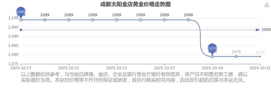 今日(2025年11月1日),1079.0元/克是成都太陽(yáng)金店黃金價(jià)格的價(jià)格標(biāo)準(zhǔn)。
