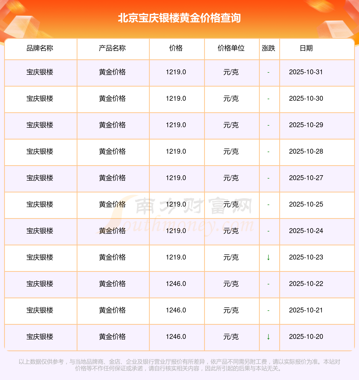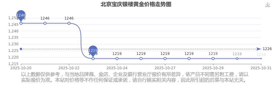 今日(2025年11月1日),北京寶慶銀樓黃金價(jià)格:1219.0元/克。