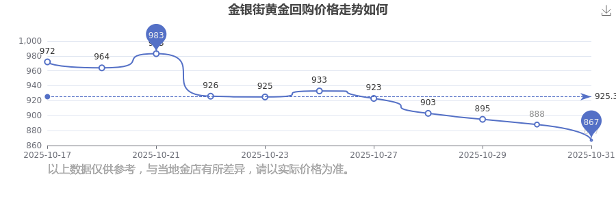 金銀街 黃金回購在今日的最新價格顯示為867.0元/克。