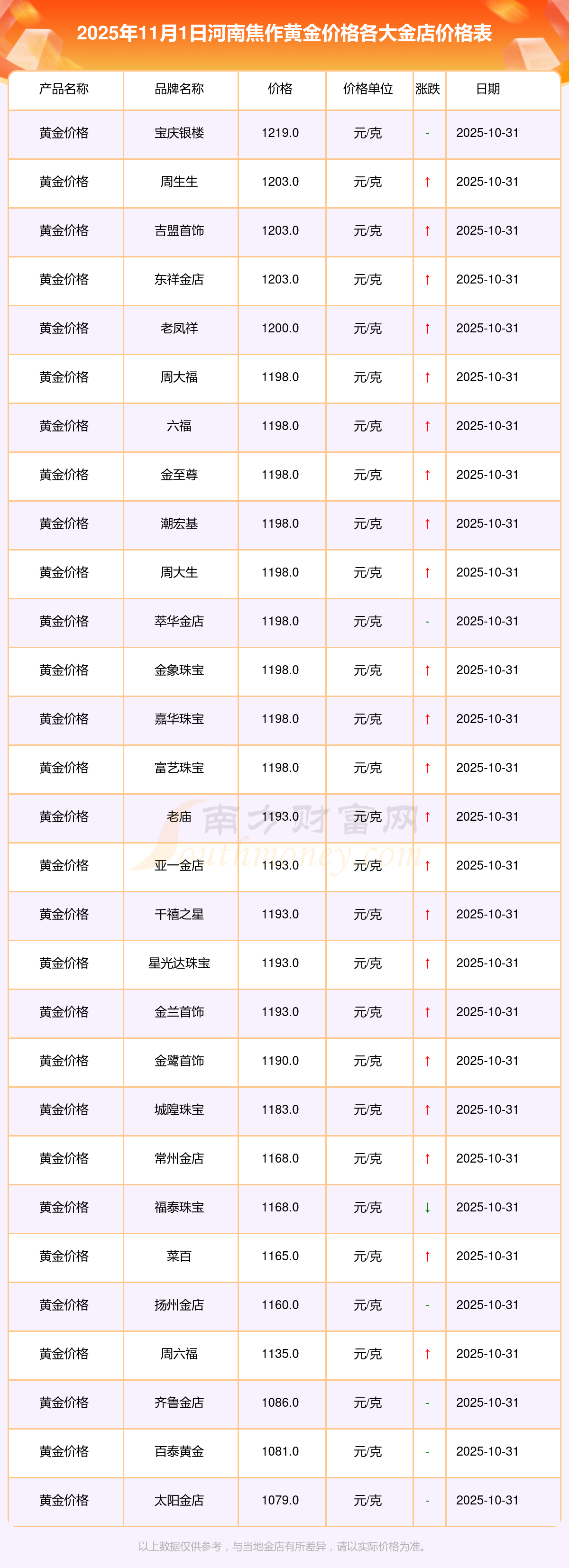 一、河南焦作各金店黃金價(jià)格表來了