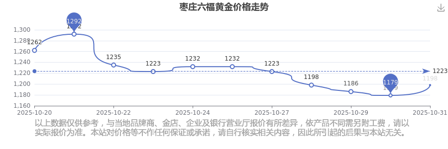 2025年11月1日當(dāng)天,棗莊六福黃金價(jià)格的單價(jià)是 1198.0元/克。