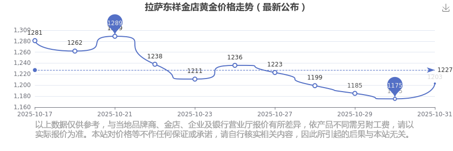 1203.0元/克,這是拉薩東祥金店于 2025年11月1日所定的黃金價格。