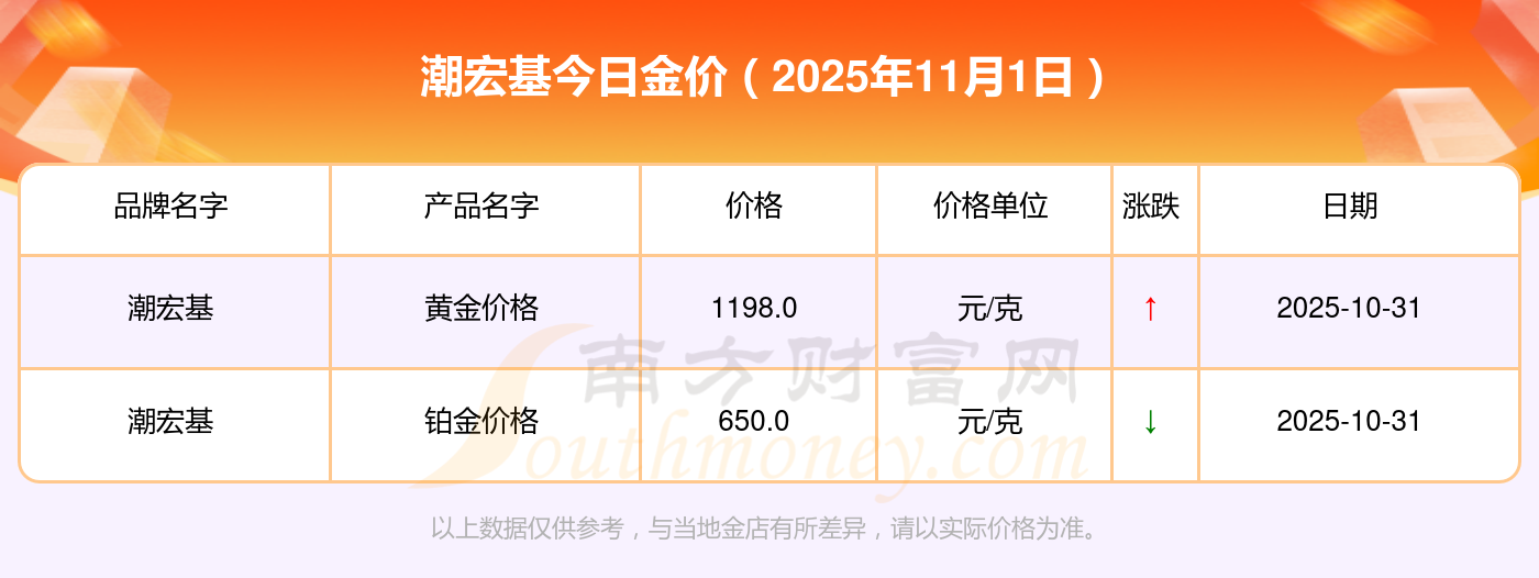 2025年11月1日各大金店黃金價(jià)格最新價(jià)格:周大福1198.0元/克,周大福650.0元/克,周大福1198.0元/克,周大福44660.0,周大福18640.0,周大福40080.0,周大福1058.0元/克,老鳳祥1200.0元/克,老鳳祥560.0元/克,老鳳祥1200.0元/克,周六福1135.0元/克。