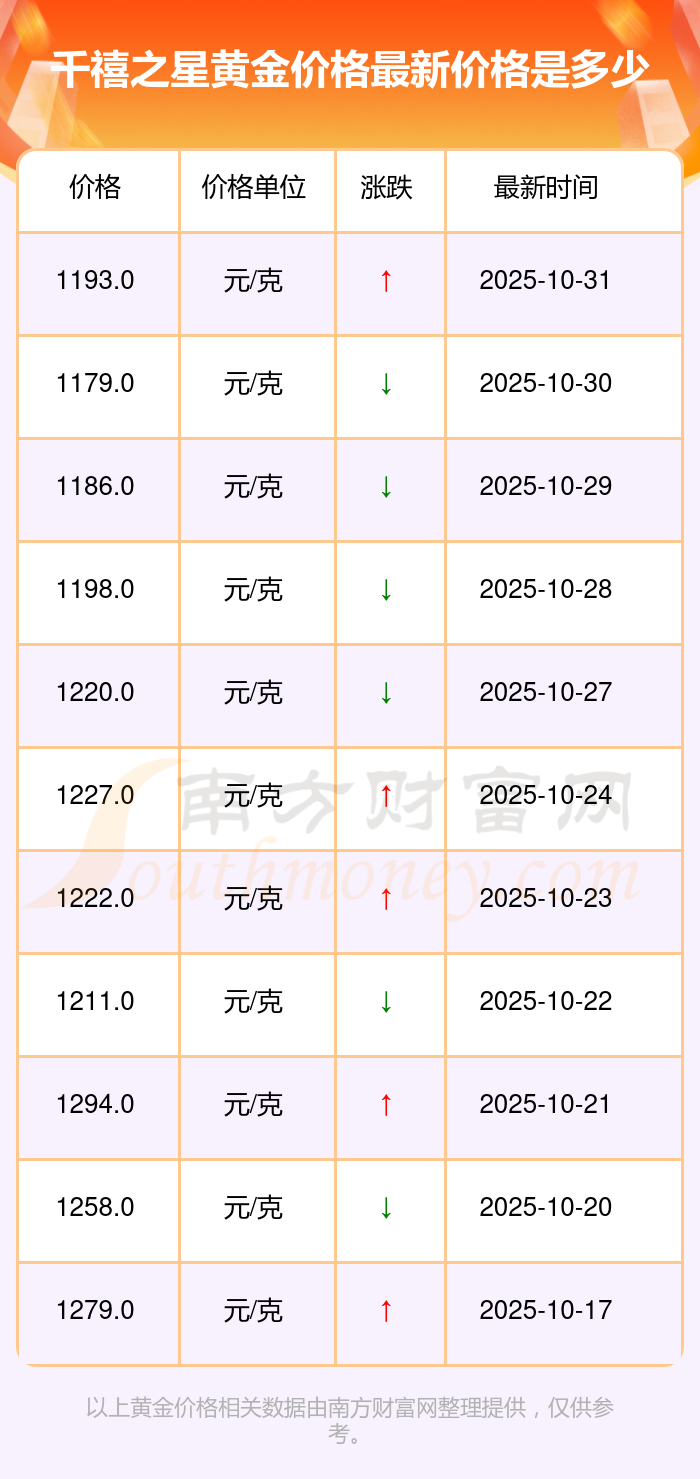 今日黃金價格具體是多少?現(xiàn)在一克黃金賣多少錢?黃金價格一般是多少錢一克?今日千禧之星黃金價格最新查詢:1193.0元/克。