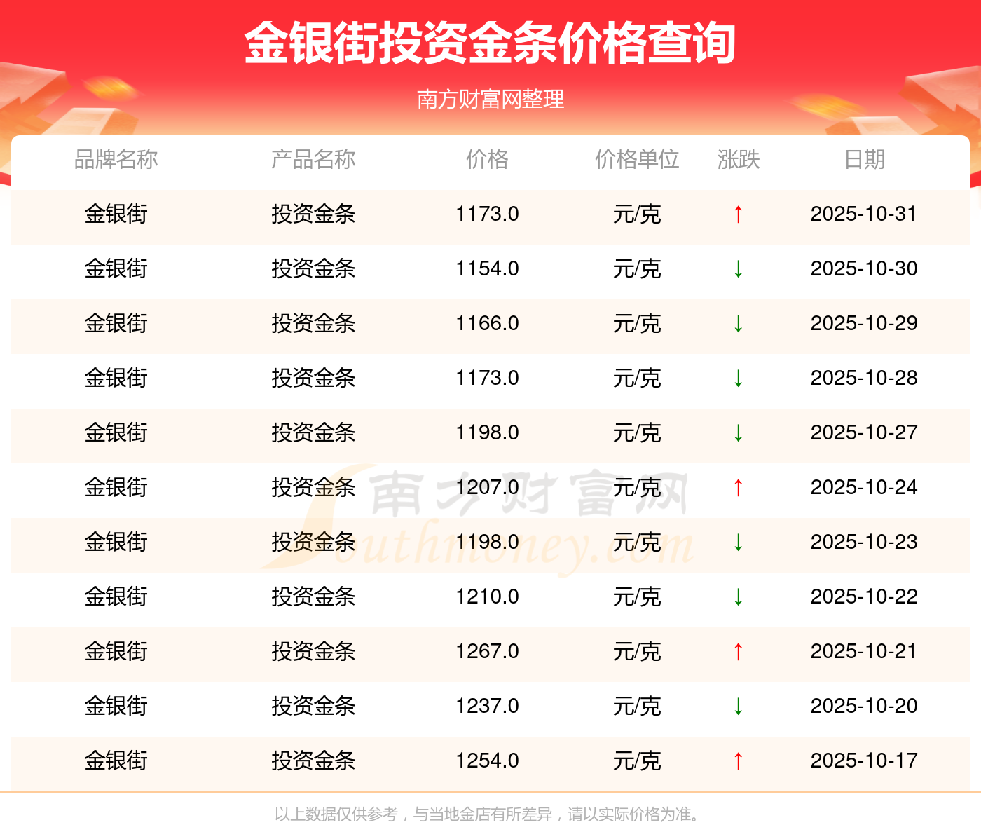 2025年11月1日投資金條今日多少一克_金銀街投資金條報(bào)價(jià)實(shí)時(shí)行情走勢(shì)圖,一起來(lái)看看吧!