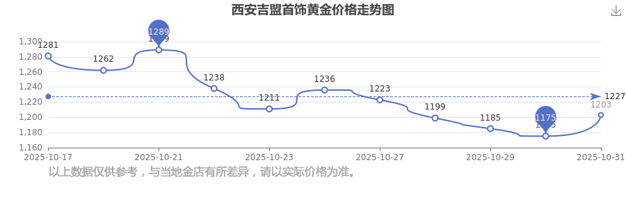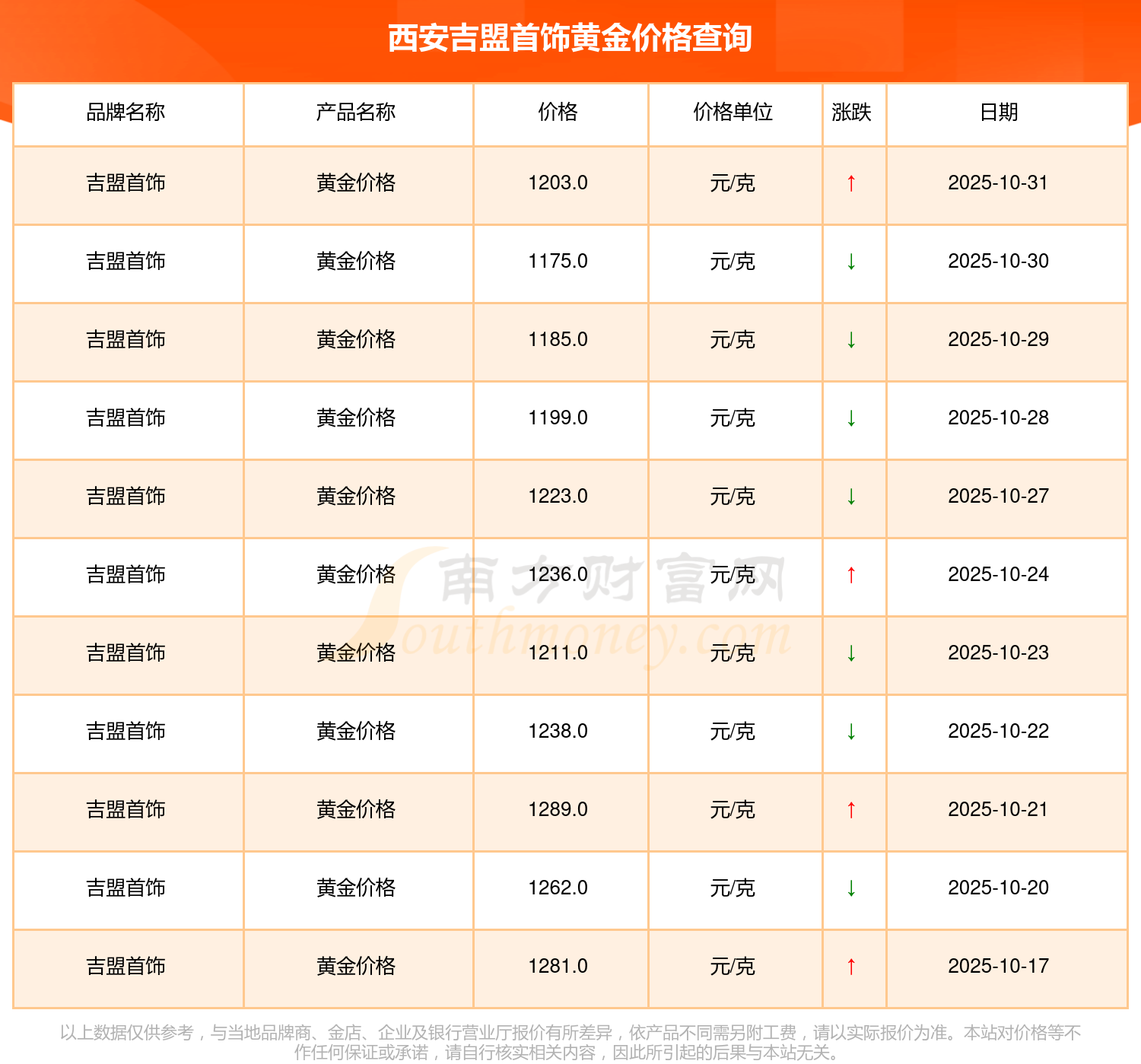 1203.0元/克,這是西安吉盟首飾于 2025年11月1日所定的黃金價格。