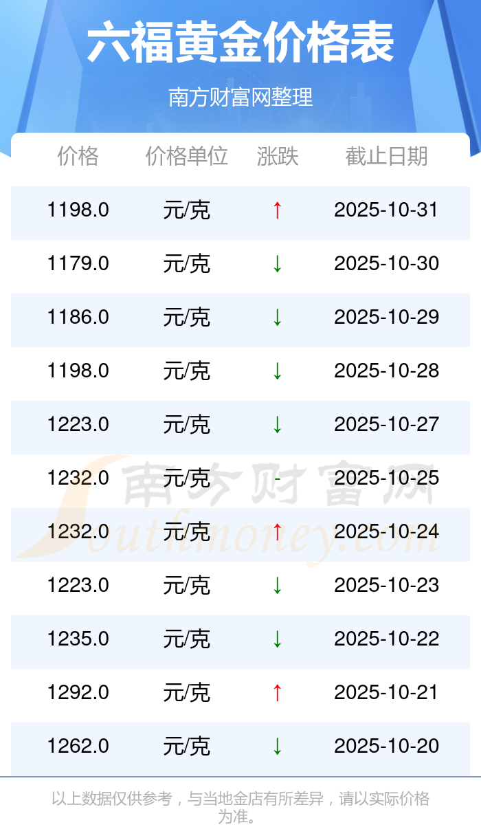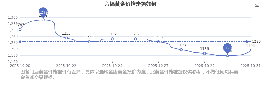 今日六福 黃金價(jià)格,最新確定為1198.0元/克。