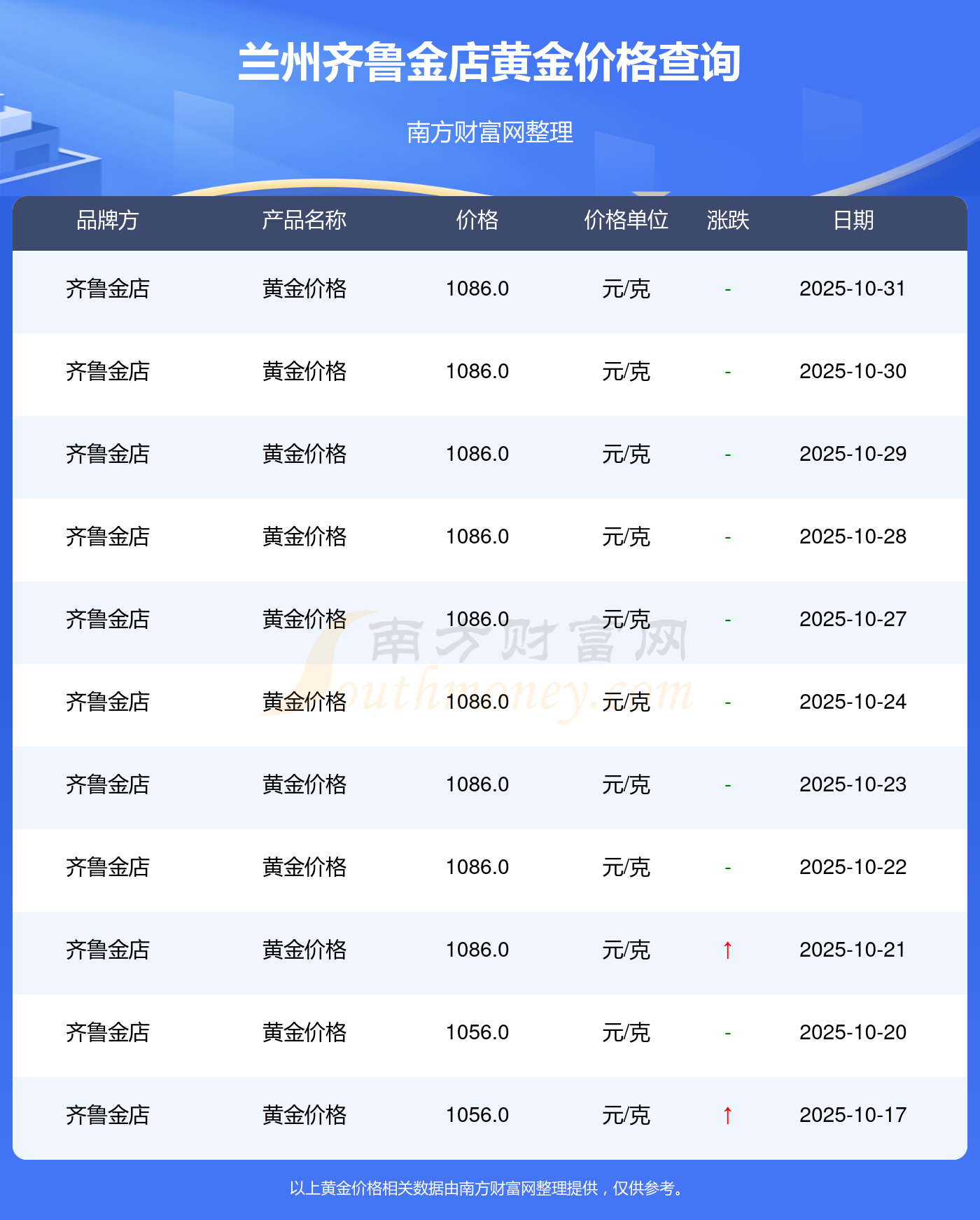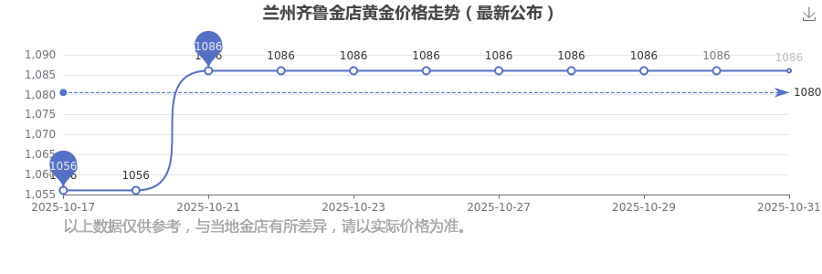 1086.0元/克,這是蘭州齊魯金店于 2025年11月1日所定的黃金價格。